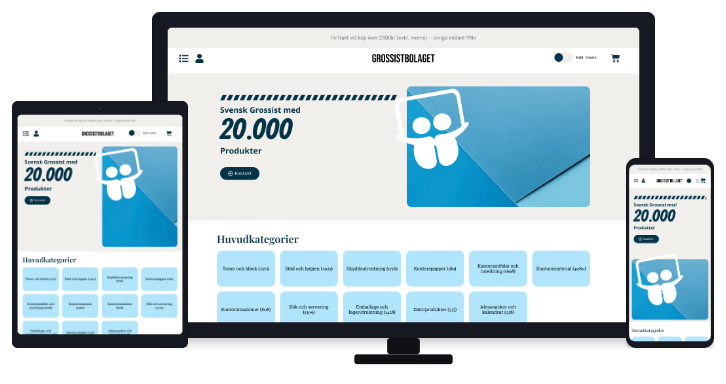 Grossistbolaget stod inför en utmaning med att byta leverantör. Tusentals produkter skulle helst integreras, med en partner som saknade integrationsmöjligheter och dokumentation. Efter ett längre utvecklingsprojekt löste Studiolyze en avancerad plattform med flertal automatiseringar som kärnan bakom Grossistbolaget.